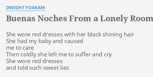 Lyrics to buenas noches from a lonely room she wore red dresses by dwight yoakam from the buenas noches from a lonely room album including song video artist biography translations and more.